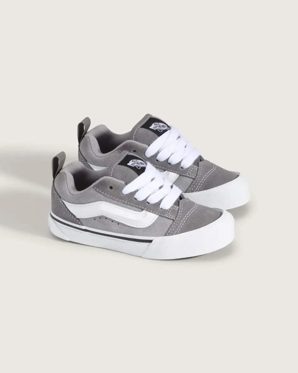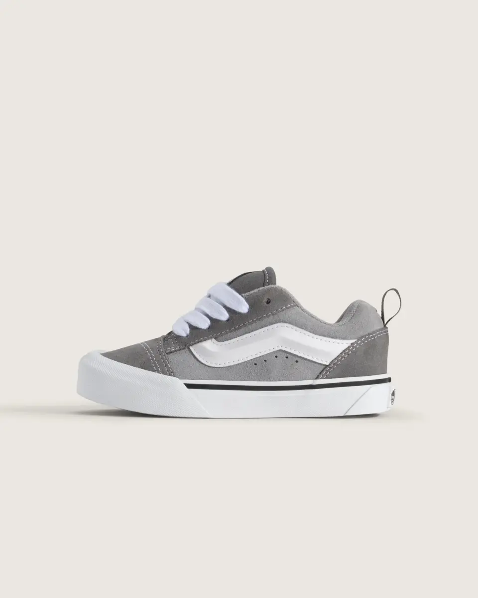 Nata nel ’98, la Knu Skool si è ispirata all’iconica Old Skool per creare qualcosa di completamente suo. La versione per bambini piccoli rivisita il design originale per i piedi in crescita, mantenendo i lacci oversize, il comfort imbottito e il look audace che definiscono le Knu Skool.