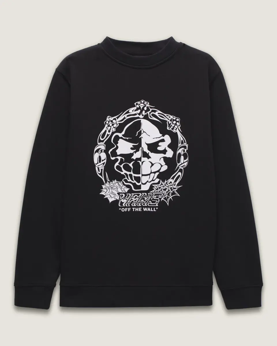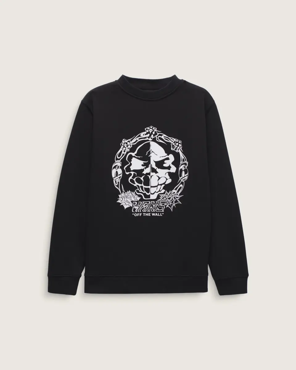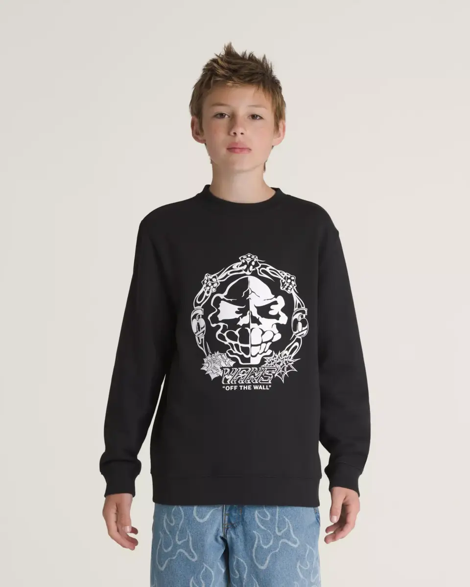 Sii un po’ subdolo con la felpa girocollo Mister Sinister per bambini, una felpa girocollo in pile dalla vestibilità ampia, a maniche lunghe. Presenta una grafica serigrafata di un teschio minaccioso sopra il logo Vans® sul davanti.