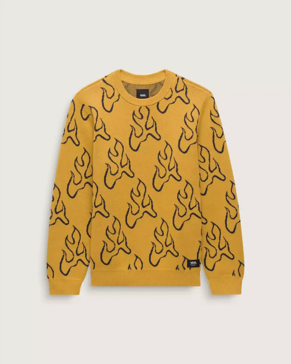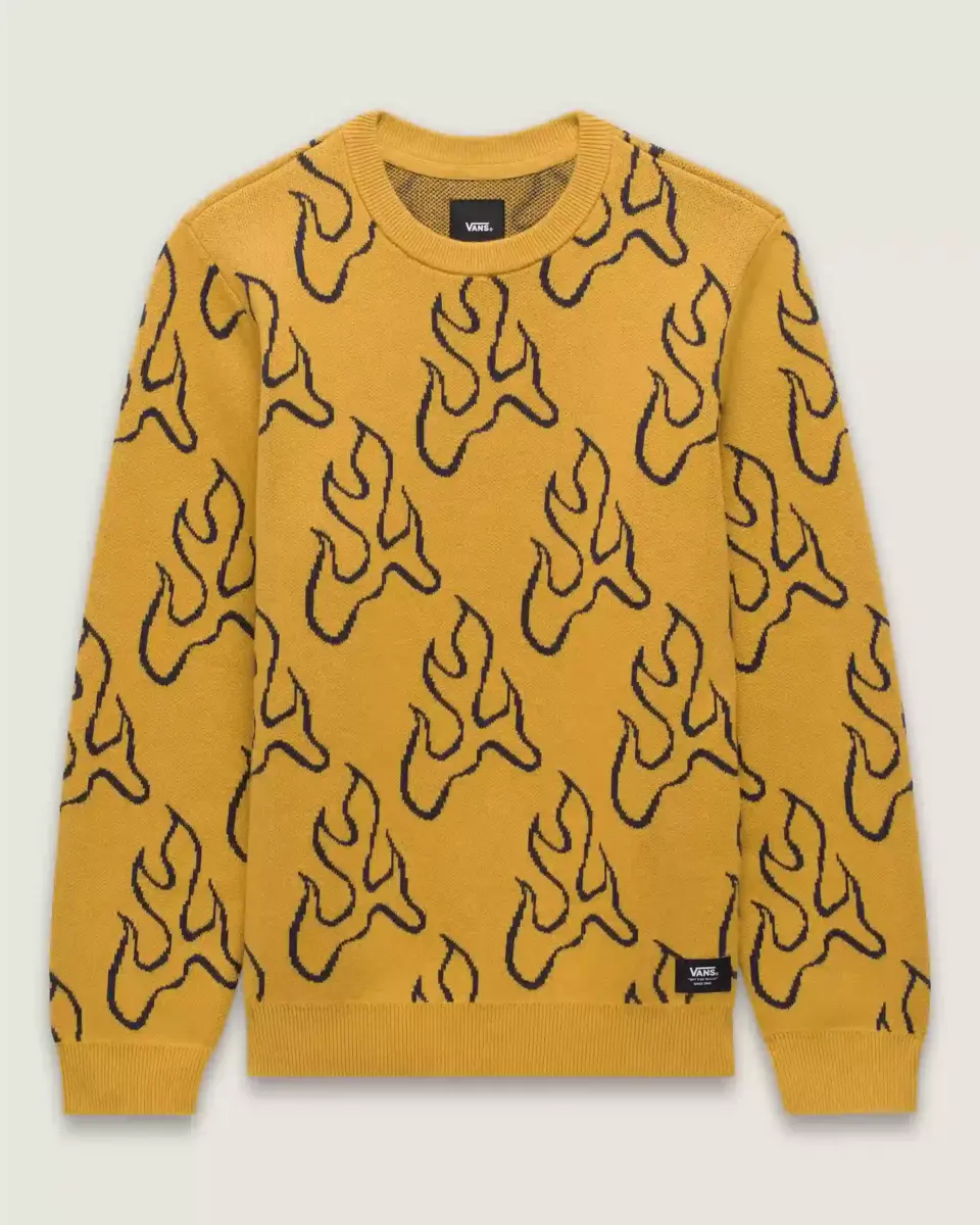 Il maglione Kids Blaze Crew è un classico maglione girocollo a maniche lunghe con motivo jacquard di fiamme all-over.