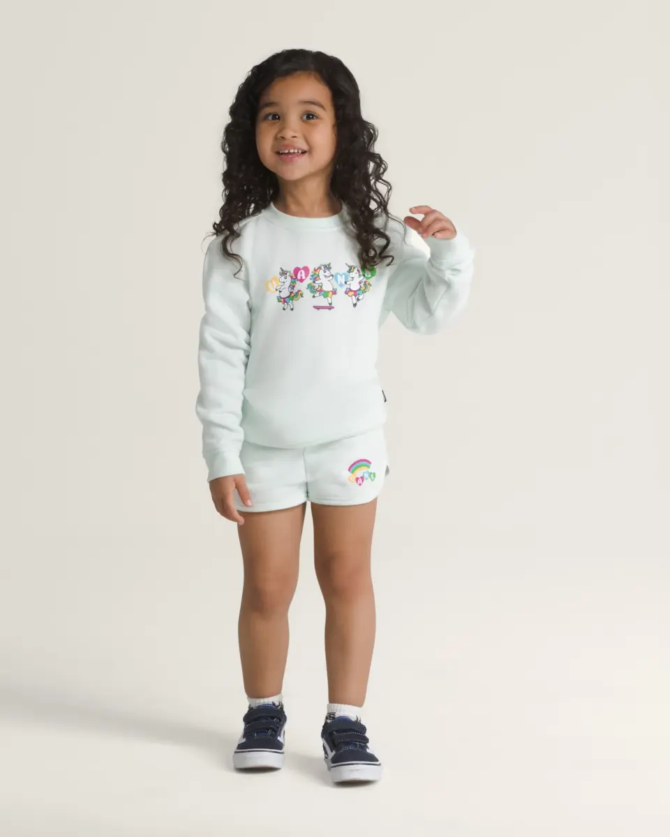 Carina e funzionale al tempo stesso, la felpa Little Kids Chasse Crew è una comoda felpa a maniche lunghe con una stampa serigrafata del logo arcobaleno Vans®.