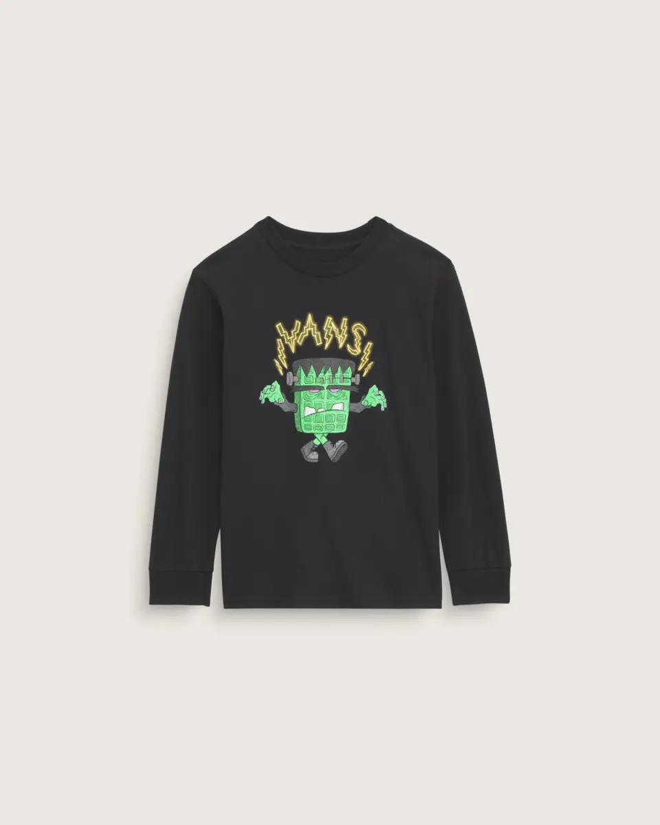 La t-shirt a maniche lunghe per bambini Frankenwaffle Halloween porta l’energia spettrale della stagione con un tocco Vans. Caratterizzata da un personaggio Frankenwaffle fosforescente, questa maglietta a maniche lunghe illumina la notte con dettagli elettrici e un omaggio alla nostra iconica suola waffle. Il morbido cotone la rende comoda da “dolcetto o scherzetto” fino all’ora di andare a letto.
