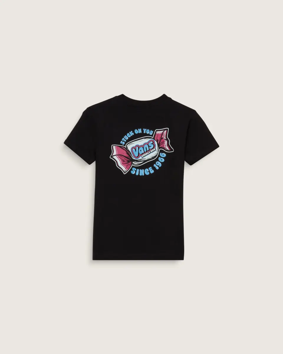 Maglietta Chew on the Little Kids Stuck On You, una maglietta girocollo a maniche corte. Realizzata in filato ad anelli cardato per una maggiore morbidezza e morbidezza, presenta anche una grafica raffigurante un pezzo di gomma da masticare Vans® avvolto sul davanti e sul retro.