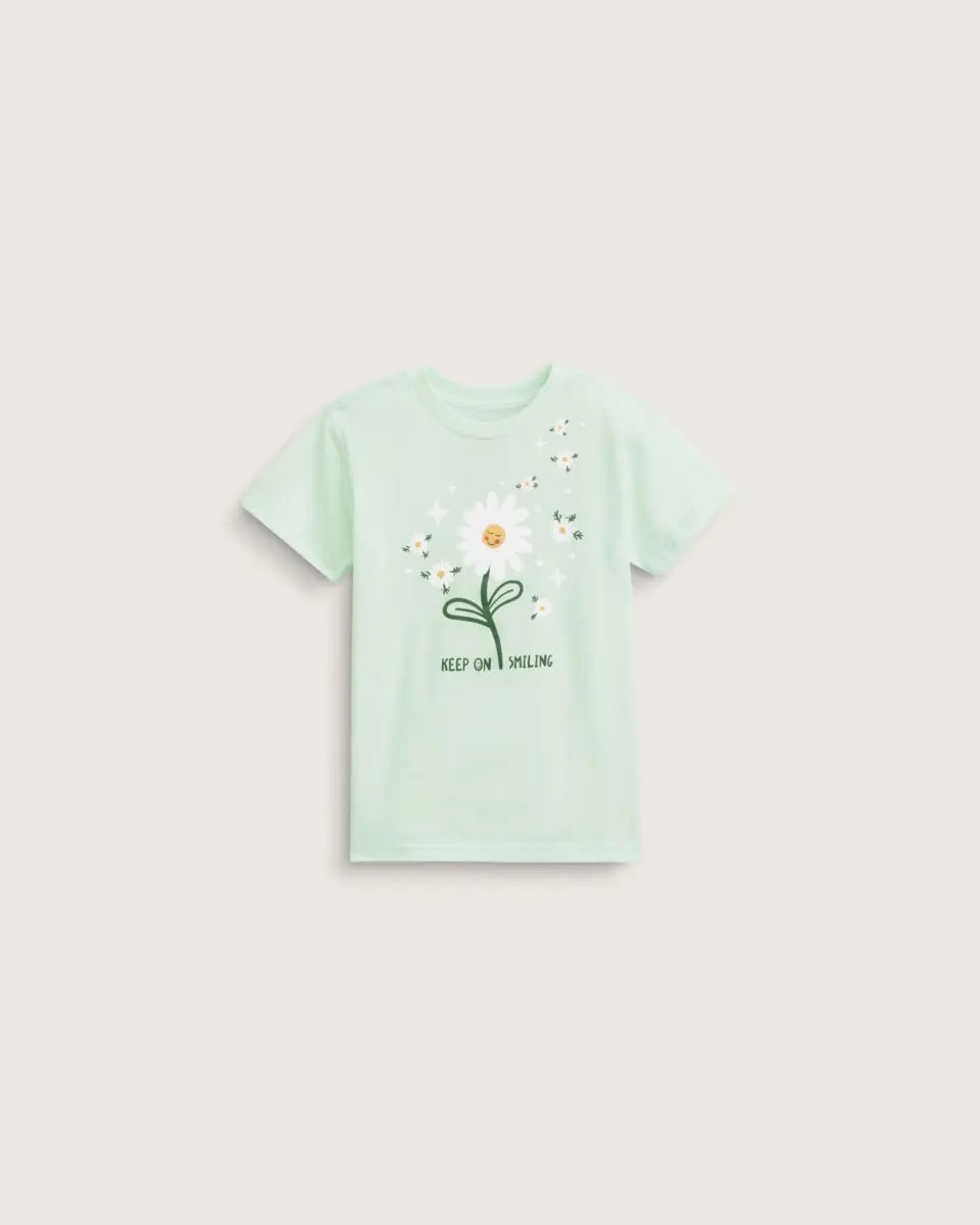 Sorridi con la T-shirt Little Kids Fresh, una maglietta girocollo a maniche corte. Realizzata in tessuto ringspun cardato per una maggiore morbidezza e morbidezza, è rifinita con una grafica fosforescente di una margherita sorridente sul davanti.