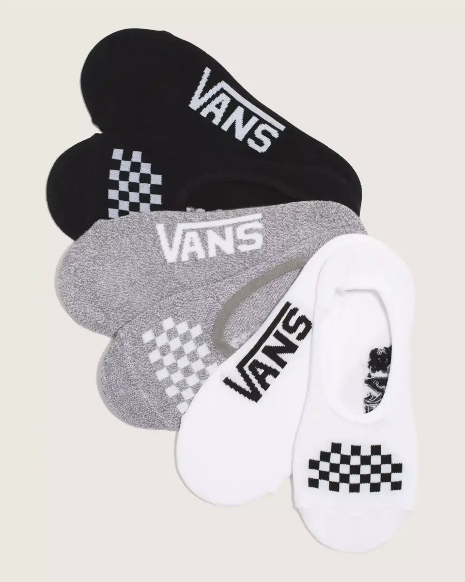Composto da tre paia di calzini bassi e invisibili, il Classic Canoodle Socks 3 Pack mette in risalto l’iconico marchio storico con motivo jacquard a scacchiera sulla parte superiore di ogni piede e i loghi Vans ai lati.