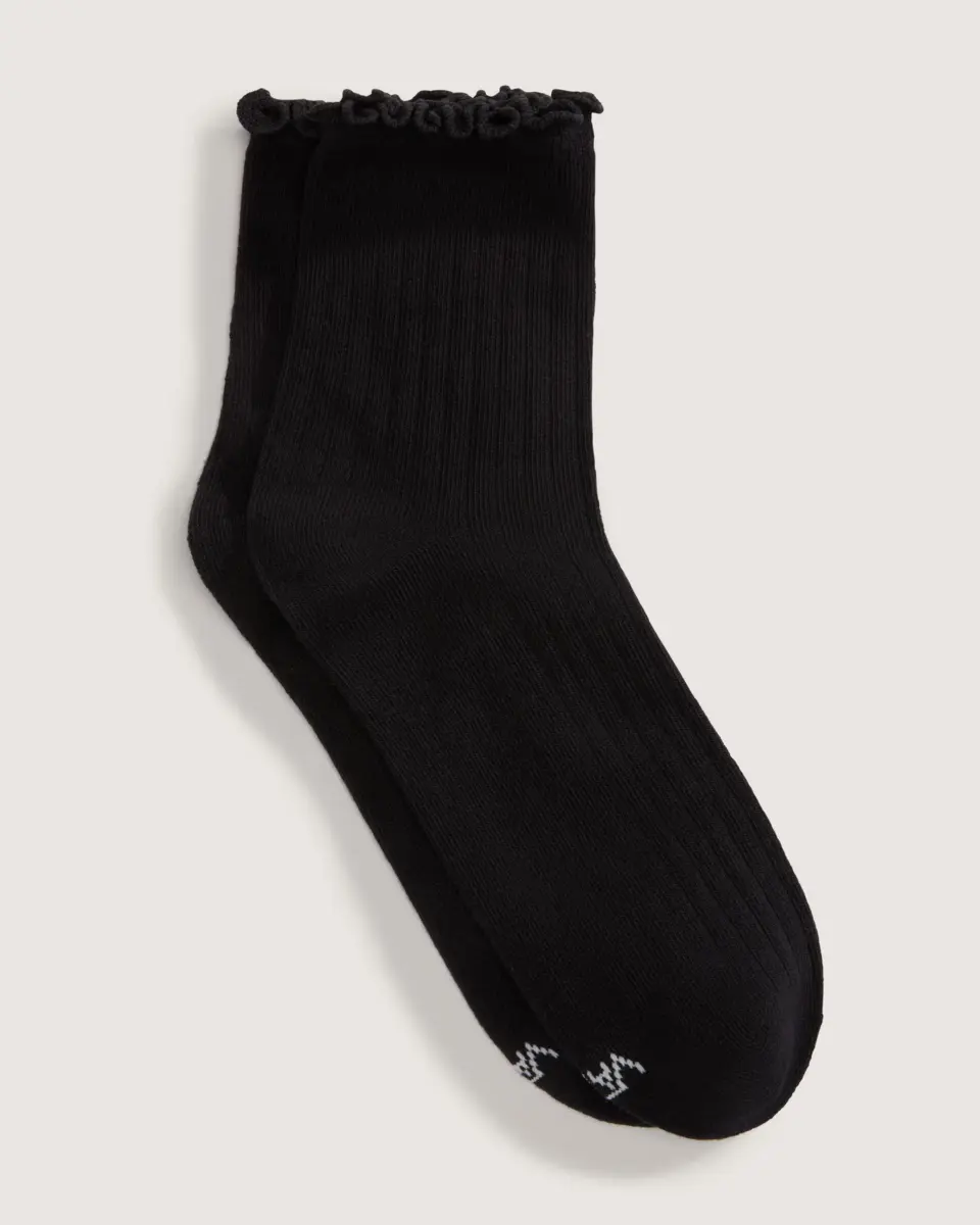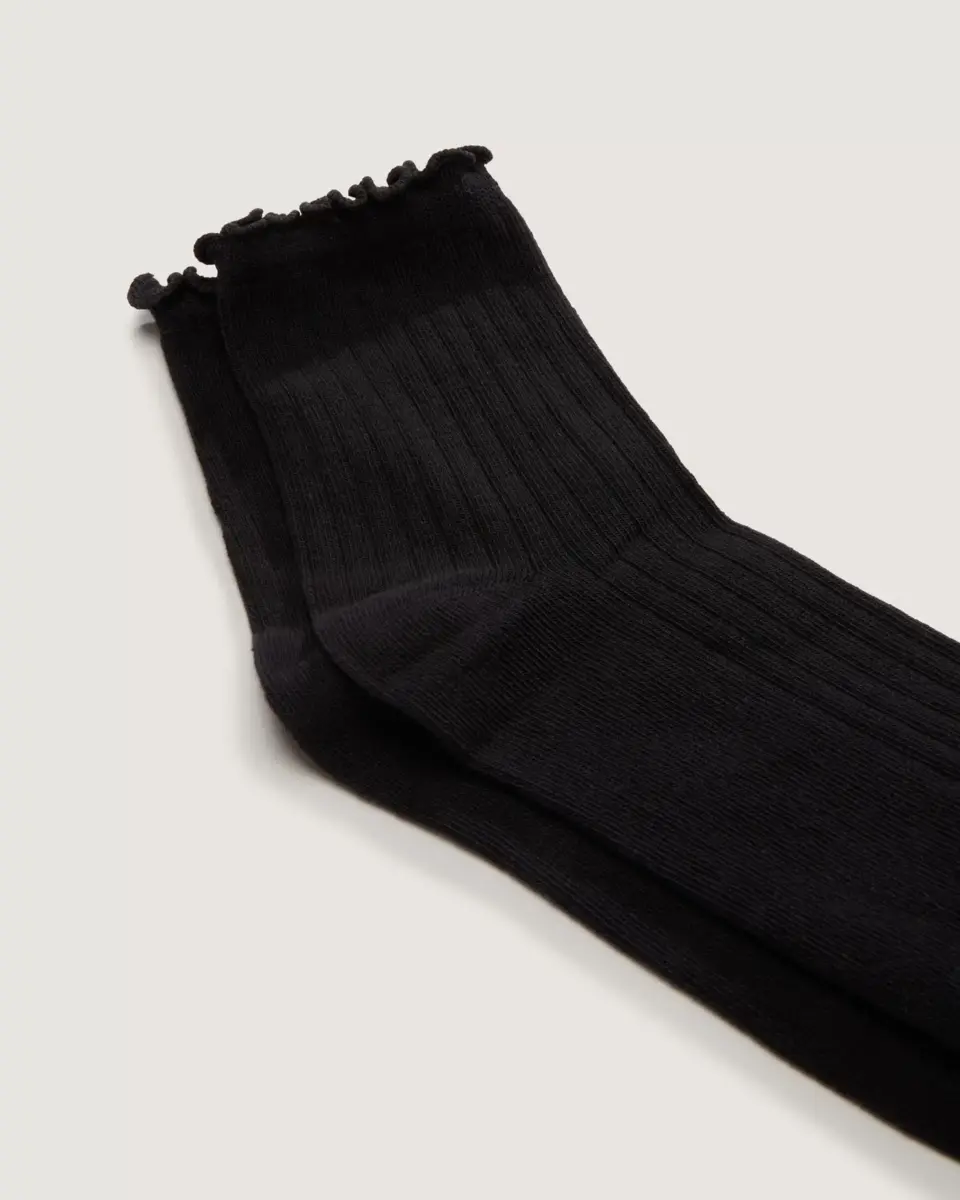 Calzini a mezza altezza con bordo a lattuga e delicata brillantezza.
