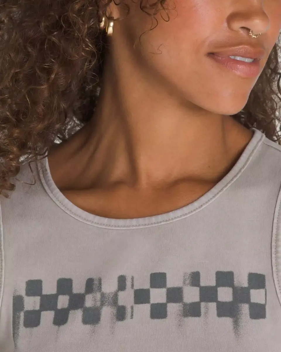 Sfoggia il tuo stile con la canotta aderente Checkerboard Crop, realizzata in jersey di cotone pesante per una lunga durata e una silhouette aderente. Con un lavaggio minerale per un look vintage e vissuto, è rifinita con la nostra iconica riga a scacchi sul petto.