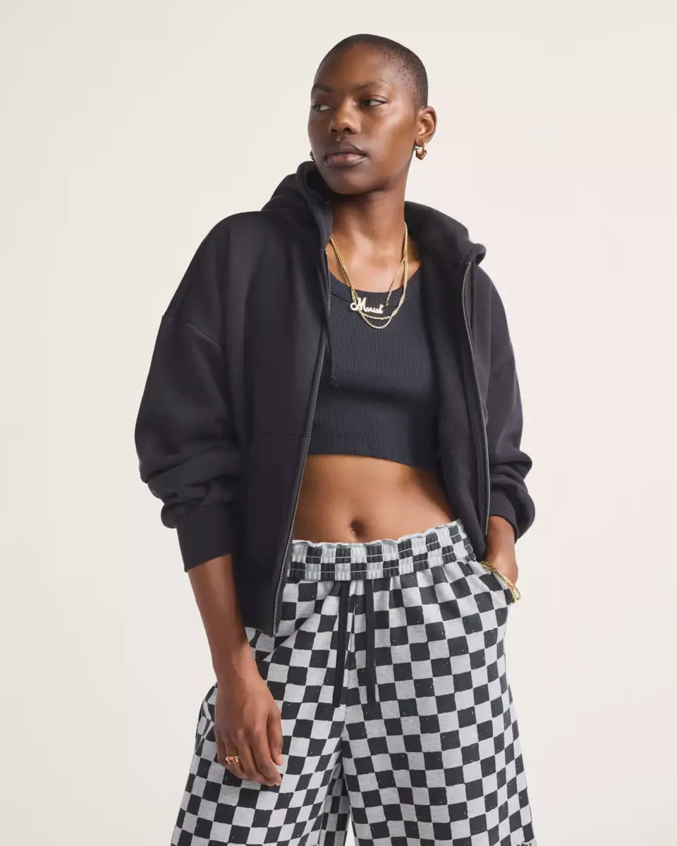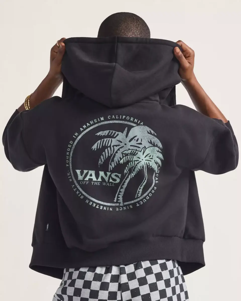 Felpa con cappuccio e zip in pile con grafica Vans a forma di palma, per un comfort quotidiano.