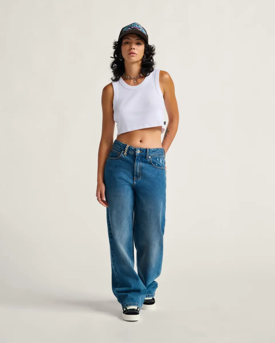 Scopri subito i pantaloni in denim Vans Sirelle ricamati in blu indaco vintage. Acquista ora sul nostro store ufficiale negli Stati Uniti. Consegna e resi gratuiti.
