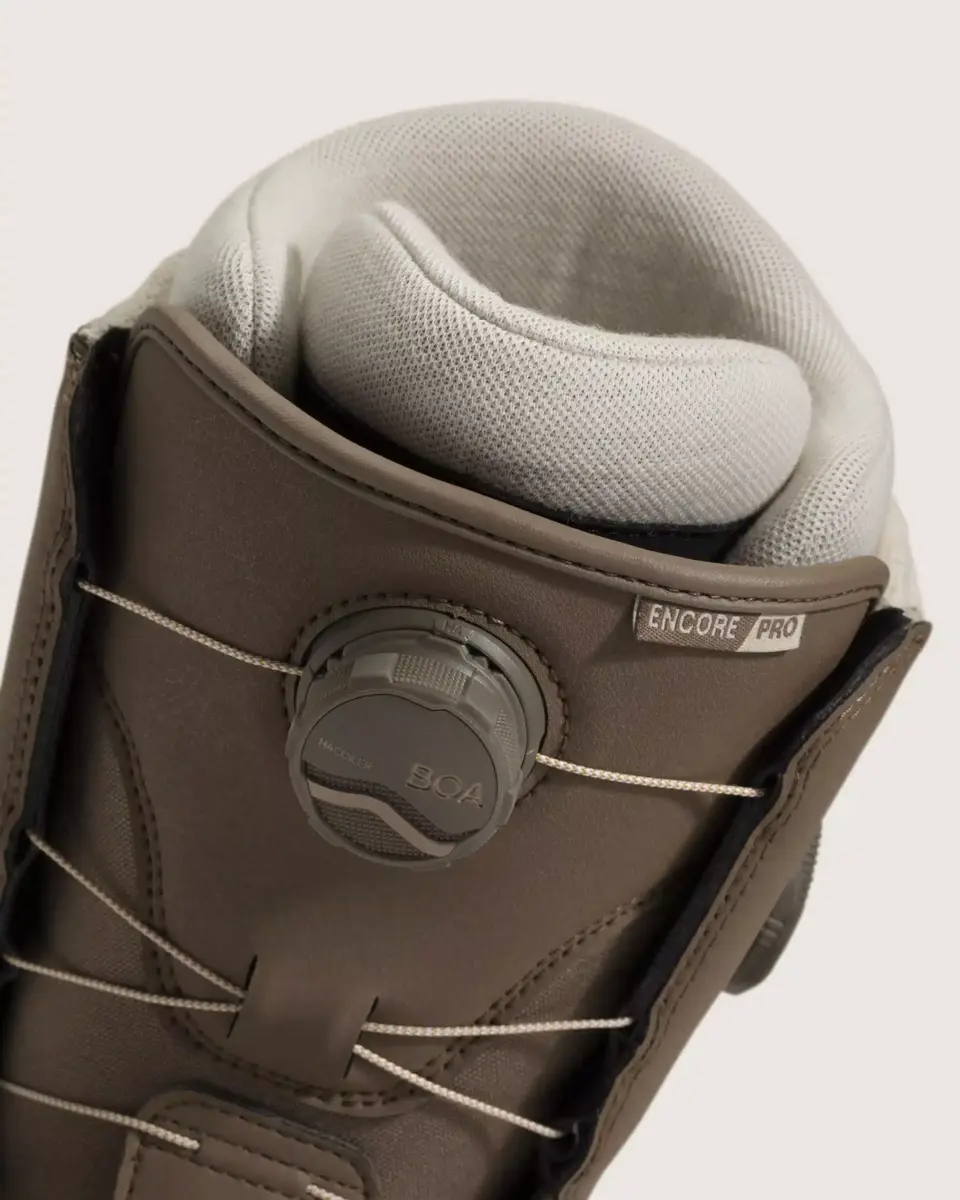 Progettato come scarpone avanzato e versatile per tutti gli ambienti, l’Encore Pro offre comfort, controllo e uno stile senza tempo in egual misura. Con il sistema BOA® Fit a doppia zona per una microregolazione immediata e un plantare V2 PopCush™ per la stabilità, questo scarpone è progettato non solo per dominare il park e il resort, ma anche per aggredirli. Aggiungi la fodera V2 UltraCush™ Smartwool® per la termoregolazione e l’Encore Pro potrebbe diventare il tuo nuovo strumento preferito per lo snowboard.
