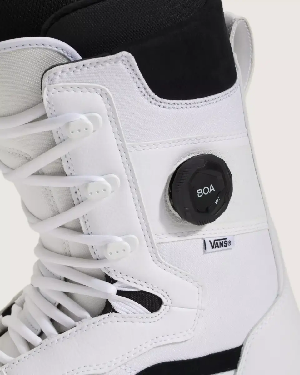 - Il sistema di regolazione BOA® con Vans Custom Slide Guide è dotato di un quadrante coiler ad alta potenza e di un quadrante remoto di media potenza per controllare tre zone di calzata, offrendo una calzata concentrata intorno all’area del collo del piede per una tenuta mirata del tallone