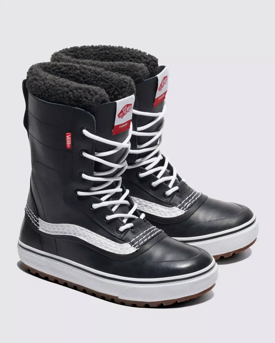 Lo stivale impermeabile Standard è il moderno standard in termini di impermeabilità, calore e aderenza per gli stivali invernali, il tutto in perfetto stile Vans. Dotato di un look vulcanizzato impermeabile, una robusta fodera in feltro e una suola Standard Snow MTE con gomma All-Trac adatta a tutti i terreni, questo stivale da neve Sidestripe è un classico contemporaneo per il freddo della famiglia Vans e la scelta ovvia per tutte le tue esigenze invernali. È realizzato con tomaia in pelle e gomma.