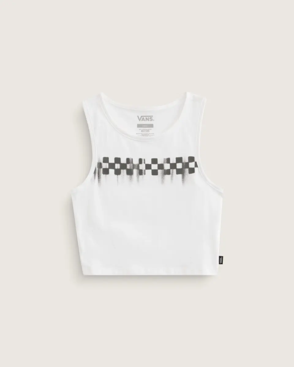 Sfoggia il tuo stile con la canotta aderente Checkerboard Crop, realizzata in jersey di cotone pesante per una lunga durata e una silhouette aderente. Con un lavaggio minerale per un look vintage e vissuto, è rifinita con la nostra iconica riga a scacchi sul petto.