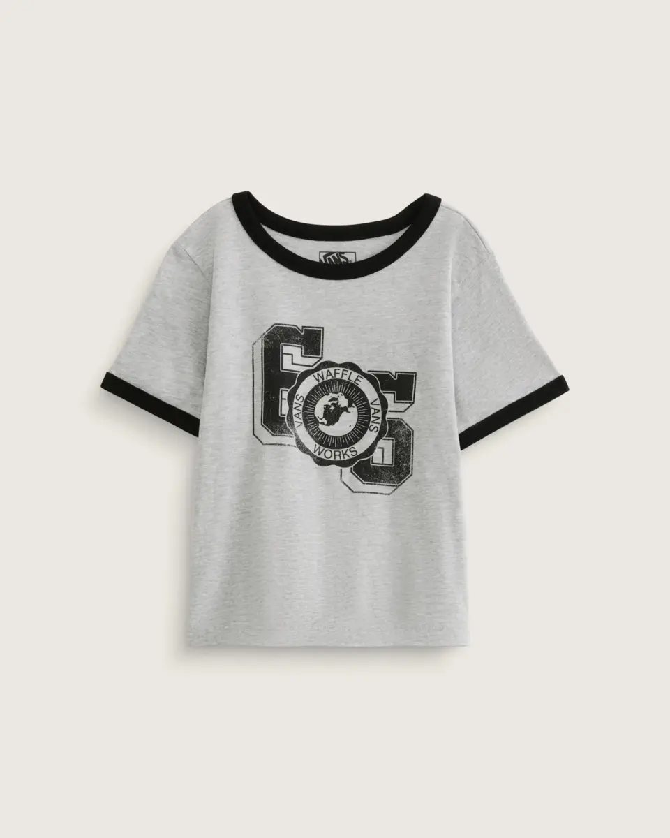 Organizza un appuntamento con la T-shirt Campus Tour, una maglietta girocollo in cotone pesante con una vivace serigrafia senza fondo del logo Vans® Waffle Works sullo sfondo del nostro anno di origine.