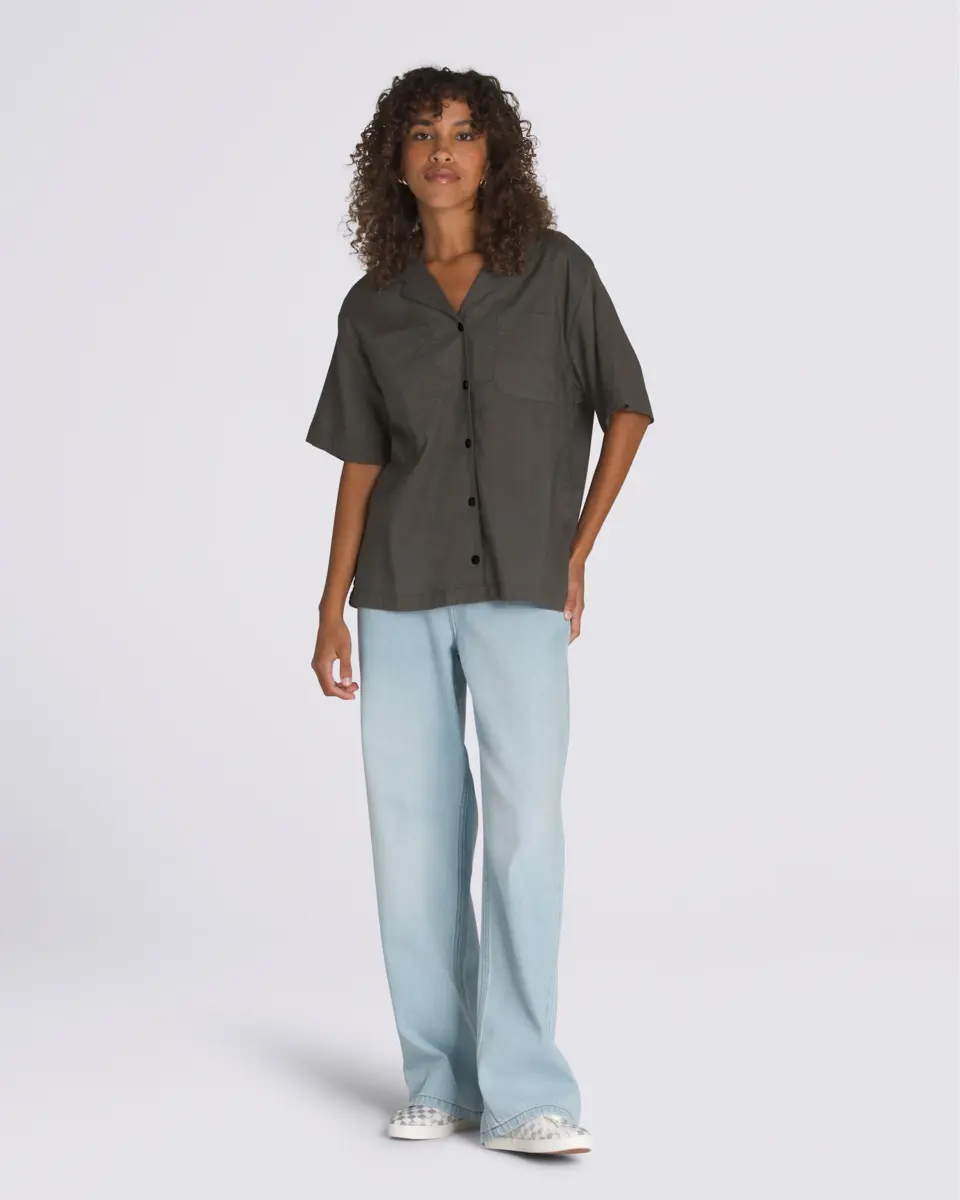 La camicia Cassidy Camp è una camicia a maniche corte con bottoni in stile retrò, rivisitata con un tessuto a trama fiammata per una texture irregolare unica. Con una comoda vestibilità squadrata, è rifinita con un logo Vans® ricamato sul taschino sul petto.