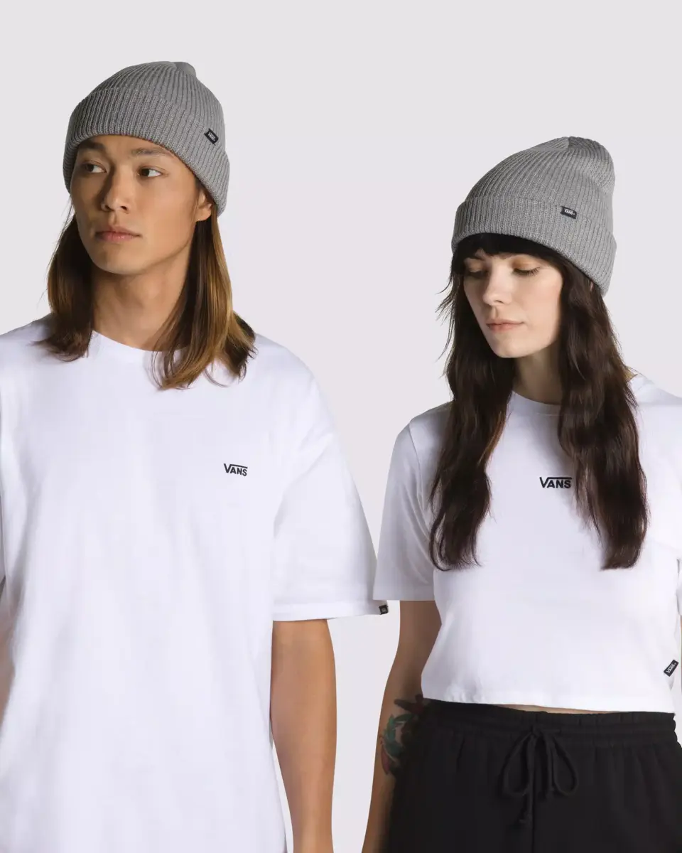 Questo comodo berretto Dirt Core Basic color grigio mélange mantiene il suo stile classico con un colore a tinta unita, le tradizionali coste elasticizzate e un’etichetta con clip e logo Vans.