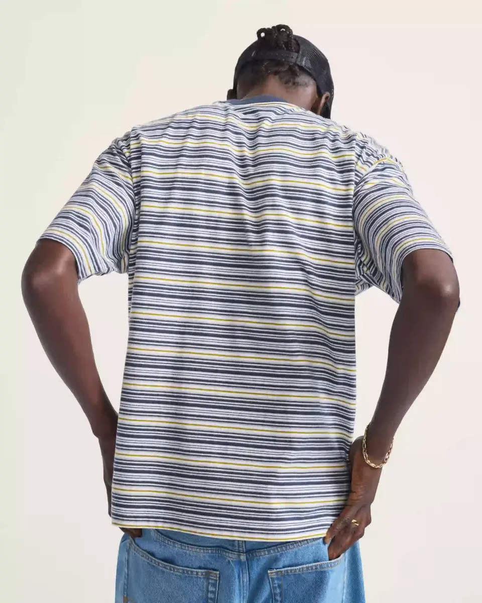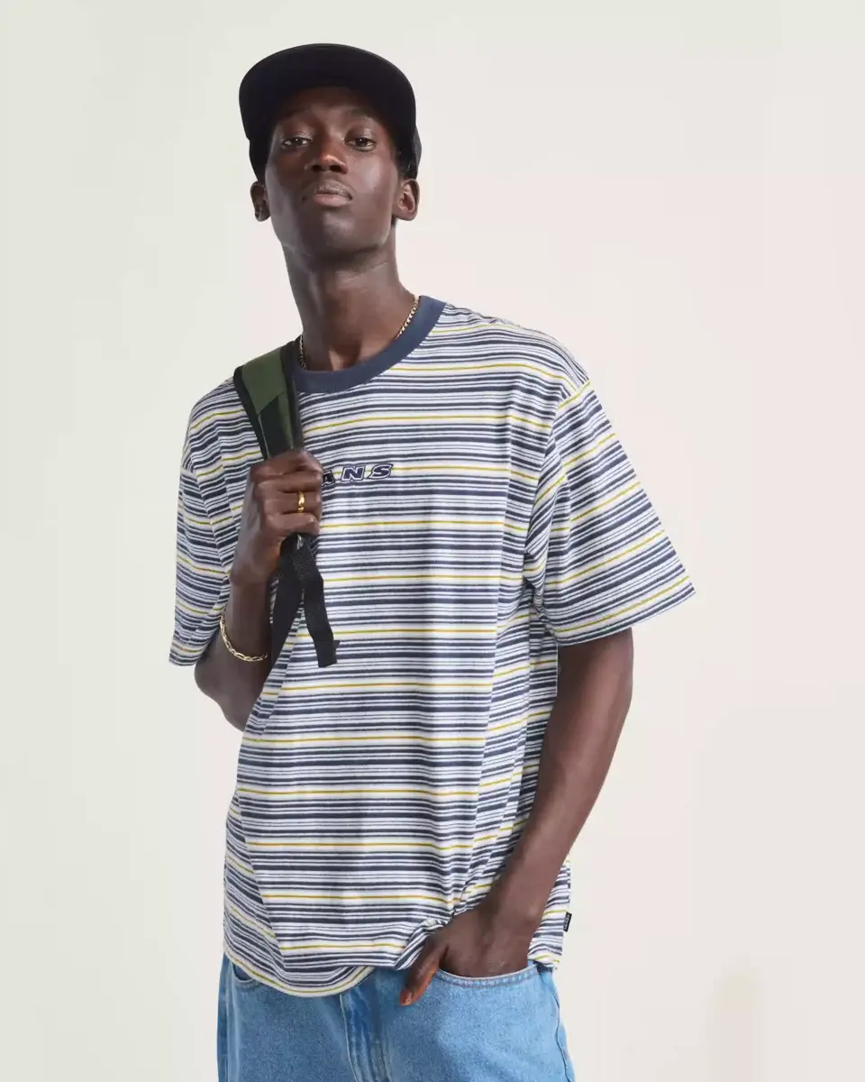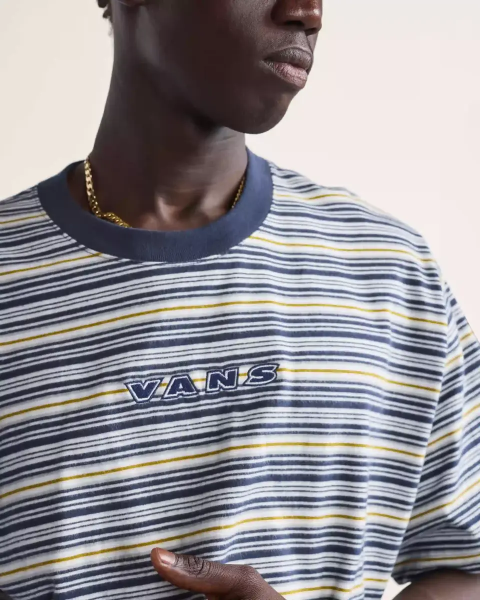 La t-shirt Cameron Stripe è realizzata in jersey spazzolato double-face, con una morbida texture spazzolata che sentirai dentro e fuori. Con maniche corte per uno stile casual e quotidiano e righe audaci, è rifinita con un logo Vans ricamato per un tocco di stile esclusivo.