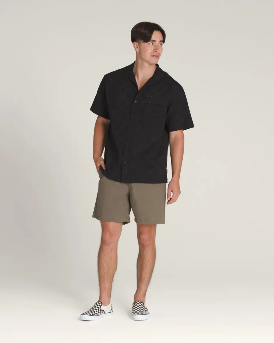 La camicia Wayside Eyelet Woven è una classica camicia a maniche corte con bottoni, orlo dritto e una vestibilità comoda e ampia. Gli accattivanti dettagli con occhielli tono su tono sono impreziositi da una tasca aperta sul petto e dettagli tipici Vans®, come l’etichetta con bandiera tessuta, simbolo del marchio storico.