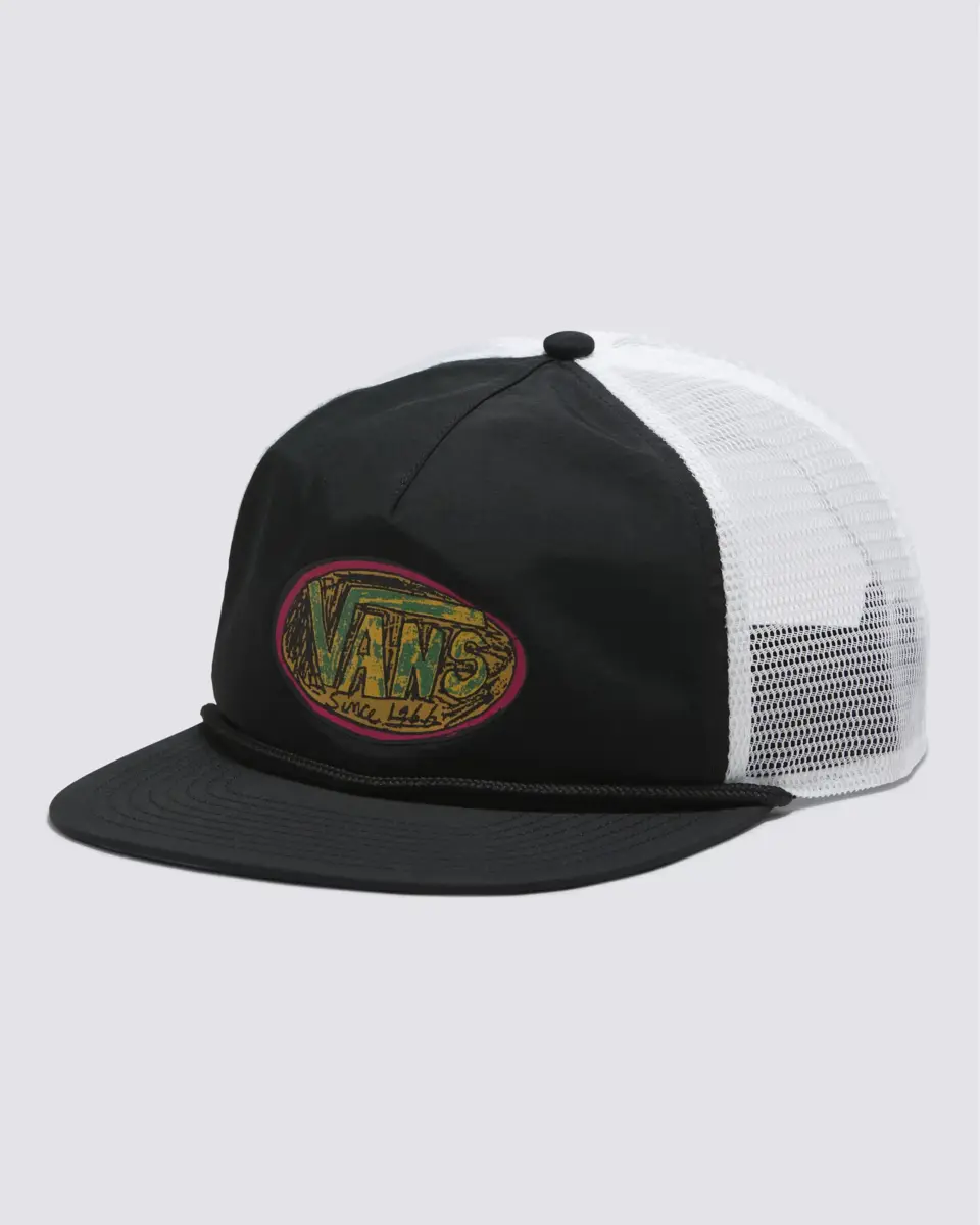 Sfoggia i tuoi graffiti con il cappellino da camionista non strutturato Sixty Sixers. Presenta tutti i tratti distintivi dei cappellini da camionista, come la parte posteriore in rete che consente la circolazione dell’aria e la visiera curvabile. La sua struttura non strutturata, però, lo rende più flessibile e comodo da indossare, e poi c’è il logo Vans® in stile street art stampato direttamente o ricamato, proprio al centro.