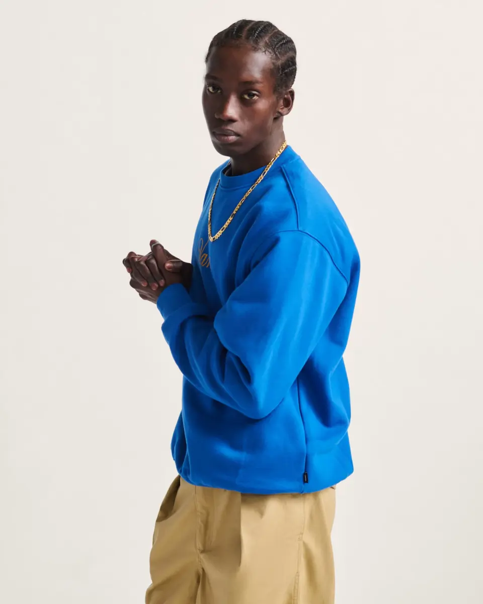 La felpa girocollo Outdoor Relaxation è realizzata in tessuto French terry di medio peso in misto cotone, per un esterno liscio e un interno confortevole. Con dettagli a coste e un’etichetta a bandiera sulla cucitura laterale, questa felpa a maniche lunghe è rifinita con un logo Vans® serigrafato sul petto e una grafica House of Vans più grande sul retro.