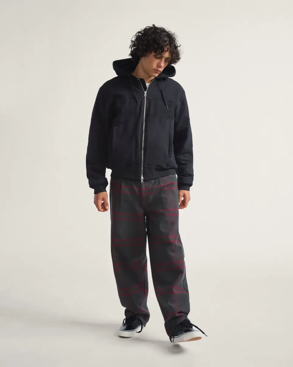 La giacca con cappuccio OTW si ispira alla robustezza del classico abbigliamento da lavoro. Realizzata in pesante tela di anatra da 14 once (circa 425 g), offre una struttura solida che dona una sensazione di solidità fin dal primo momento in cui la si indossa. Una morbida fodera in flanella offre calore e comfort, mentre dettagli come la cerniera a doppio cursore, le finiture a costine e il colletto interno ne rifiniscono i bordi. La fodera si ricollega ai pantaloni OTW Cruise.