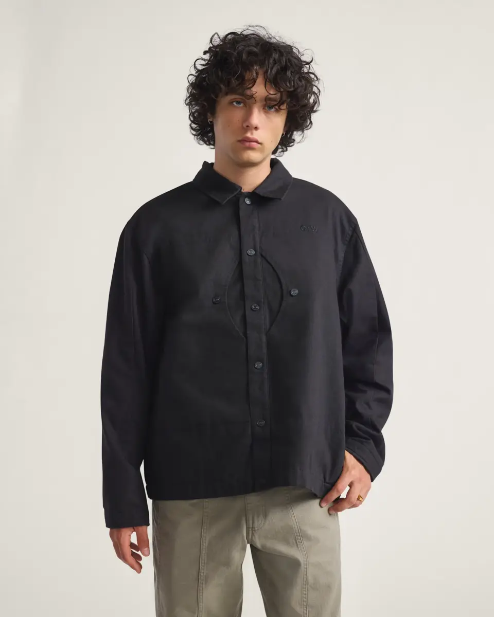 La giacca OTW Twill gioca con lo stile familiare, rielaborando una silhouette pulita da lavoro attraverso la lente del design a strati. Un rivestimento esterno in tela di cotone pesante conferisce struttura e carattere, mentre la fodera in flanella microsabbiata aggiunge calore e morbidezza. Le tasche curve sul petto con chiusure a scatto offrono dettagli funzionali e un discreto logo OTW mantiene la finitura discreta ma intenzionale.