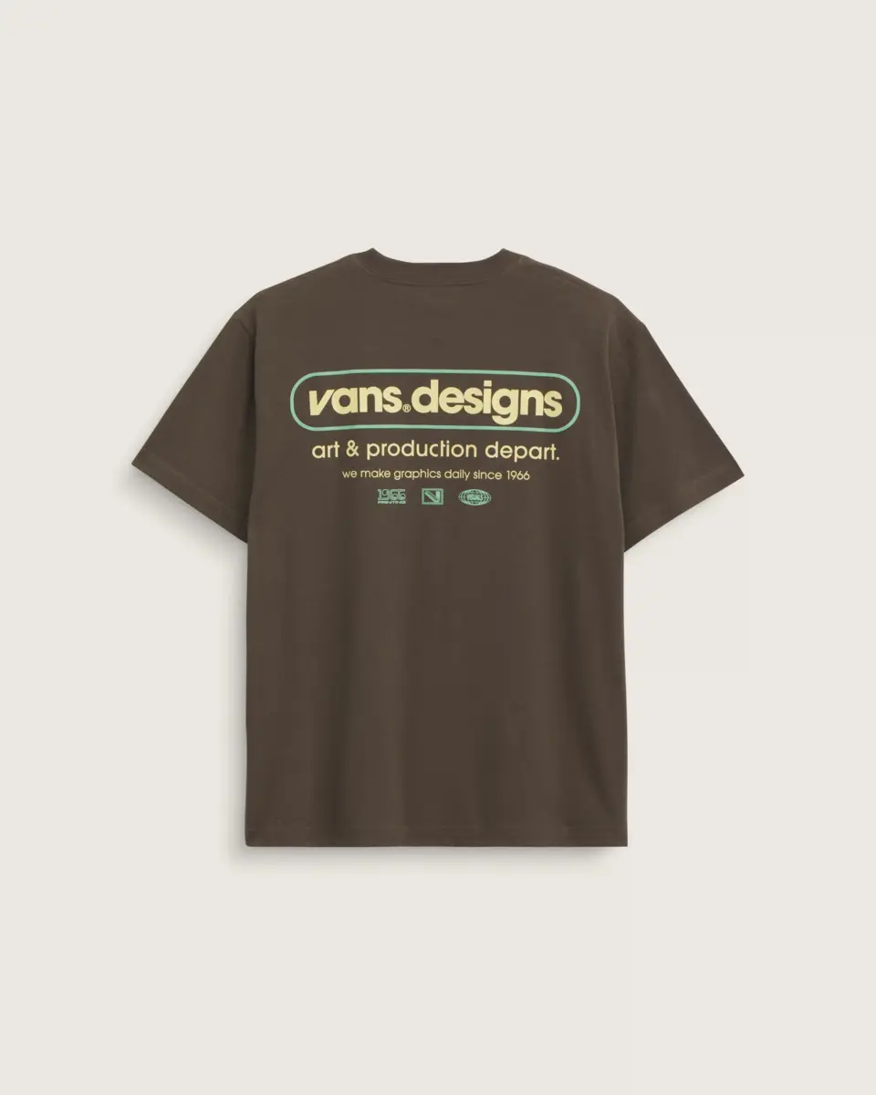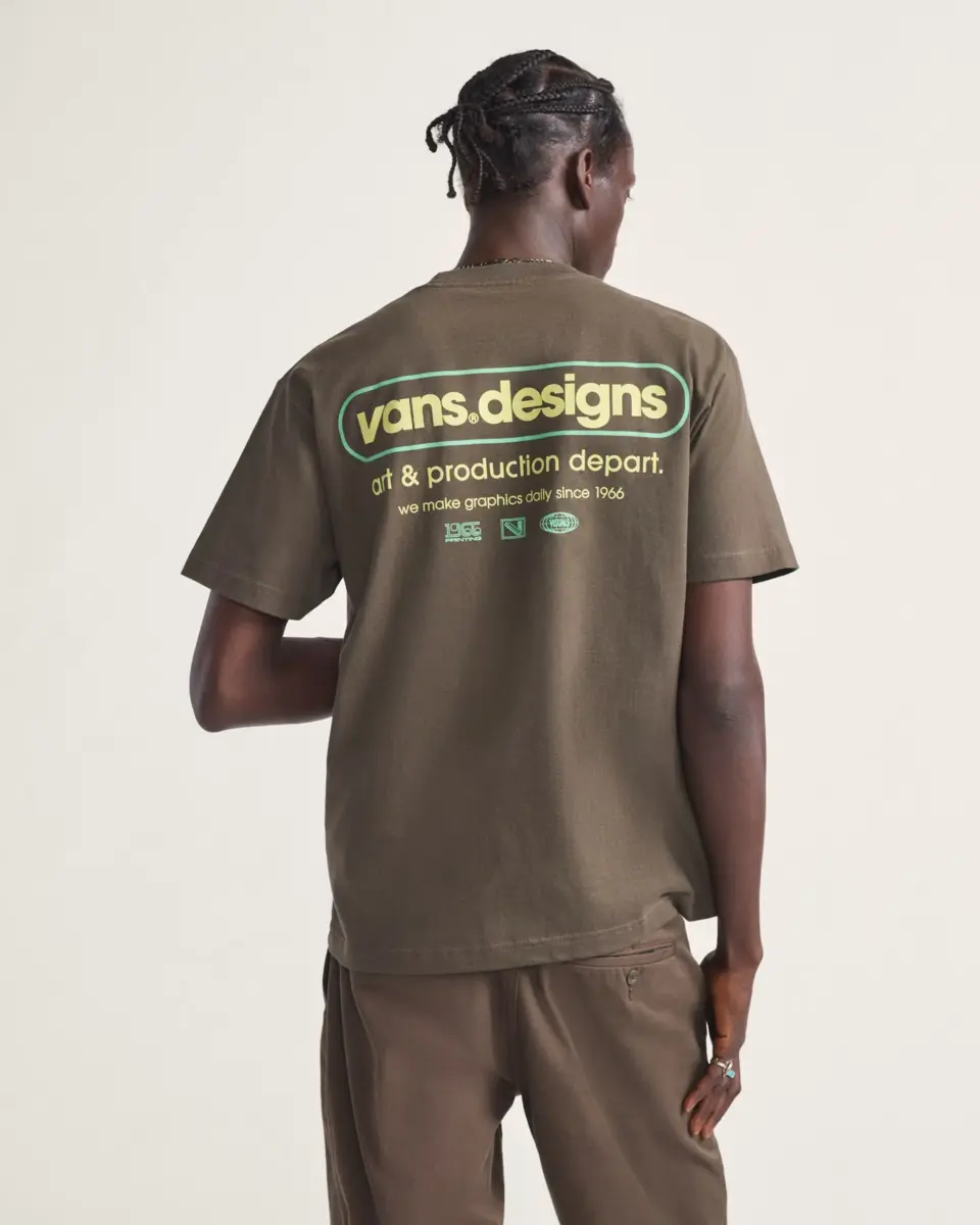 Con maniche corte per un abbigliamento casual e quotidiano, la T-shirt Art Production richiama la visione classica e artistica di Vans, incarnando un capo essenziale e alla moda. Il pezzo forte è una serigrafia per un design duraturo, con il logo Vans sul davanti e una versione più grande dello stesso sul retro, che pubblicizza un reparto di arte e produzione fittizio.