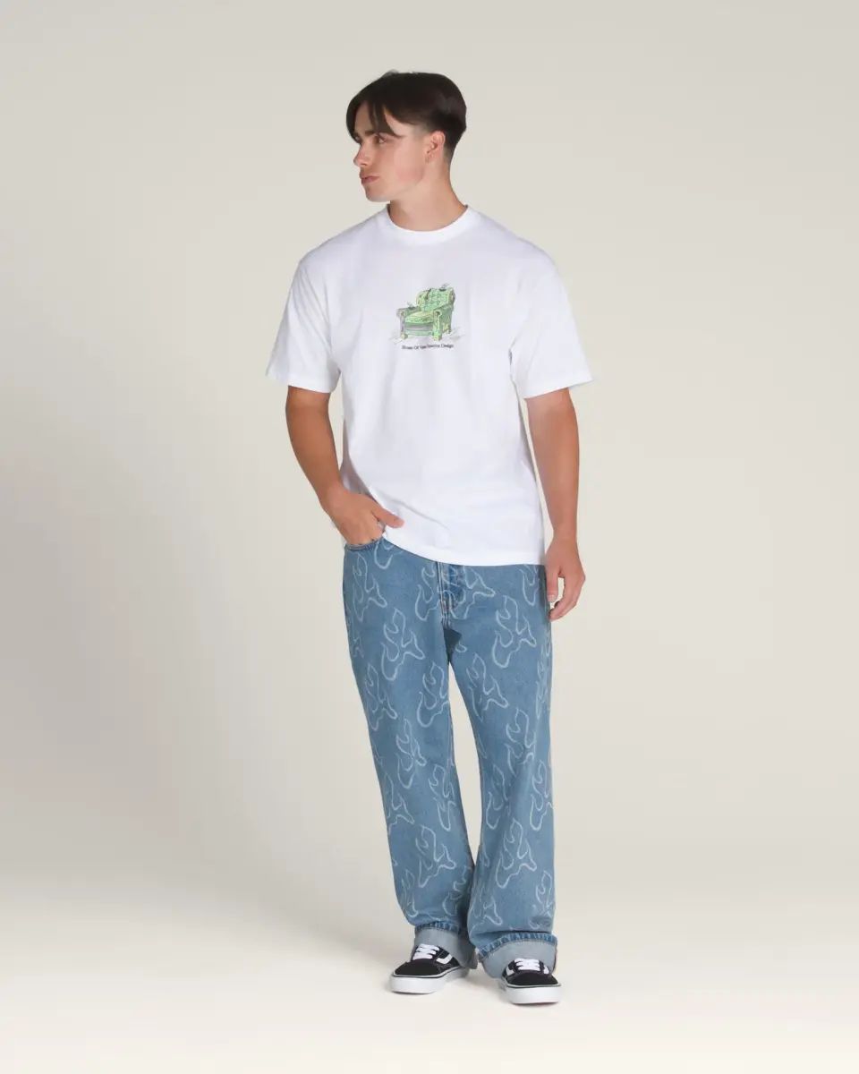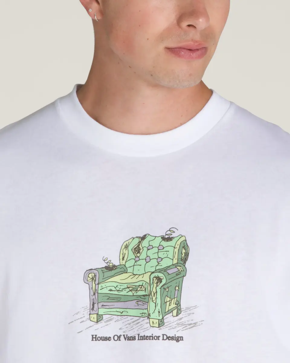 Sfoggia il tuo stile con la T-shirt Interior Designer, una maglietta girocollo a maniche corte dalla vestibilità ampia con una grafica serigrafata di una poltrona consumata con il marchio House of Vans® Interior Design.