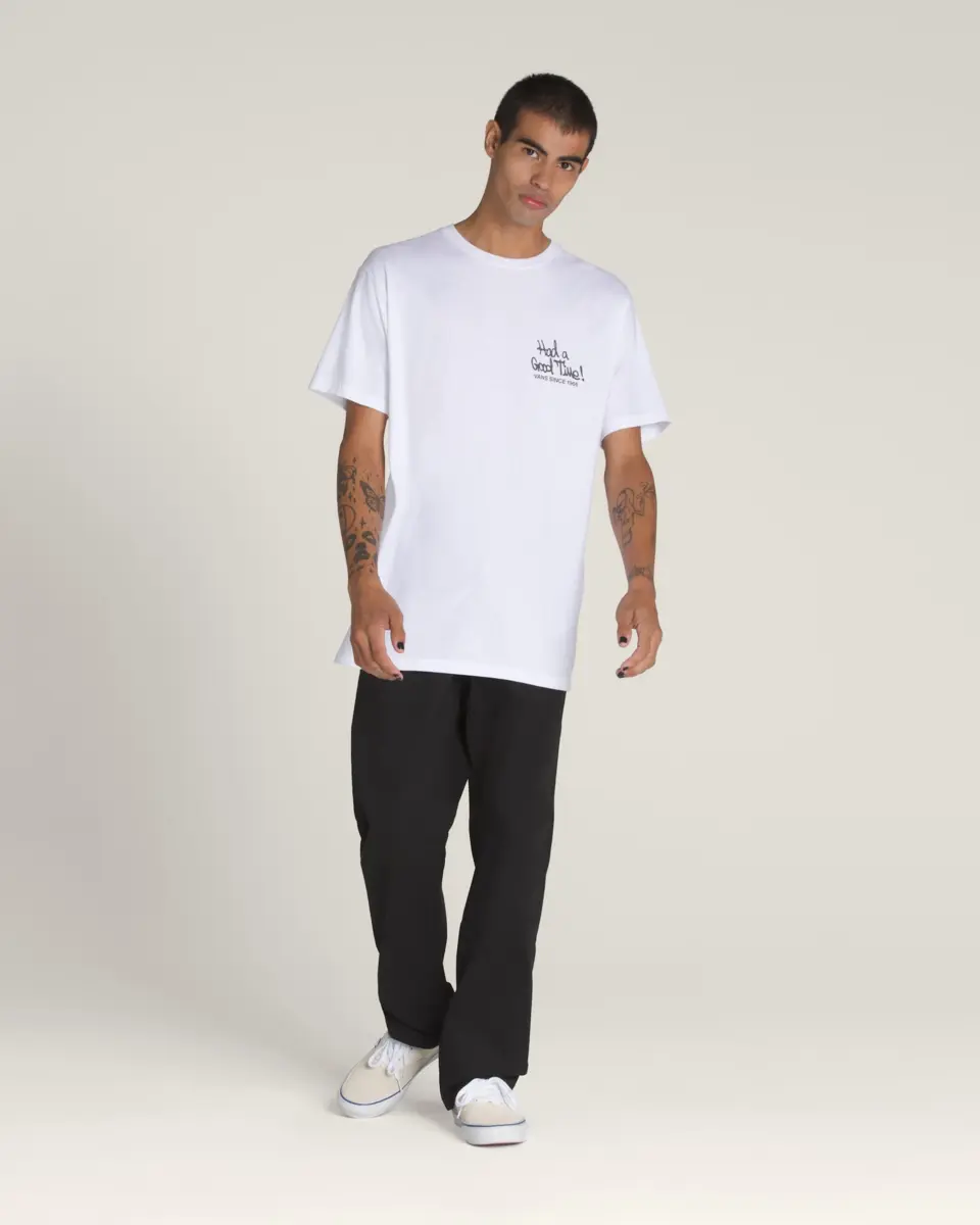 Metti il tuo OOO nella maglietta Good Times 66, una maglietta girocollo a maniche corte dalla vestibilità classica con una grafica serigrafata sul davanti che dice “Had a Good Time!” e una grafica sul retro di uno scheletro nella sua vacanza da sogno.