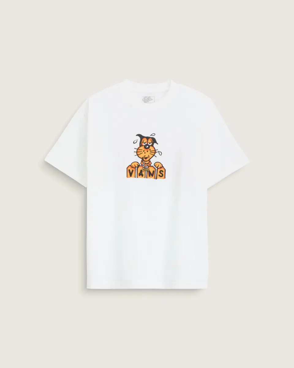 Non preoccuparti, con la t-shirt Waffles the Dog, caratterizzata da una stampa serigrafica per un design duraturo, con un cane rilassato sopra il logo Vans. La combinazione di stile casual e comodo girocollo con cotone traspirante la rende un capo perfetto da indossare a strati o da sola.