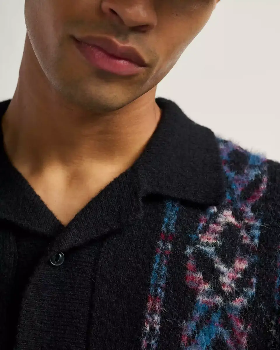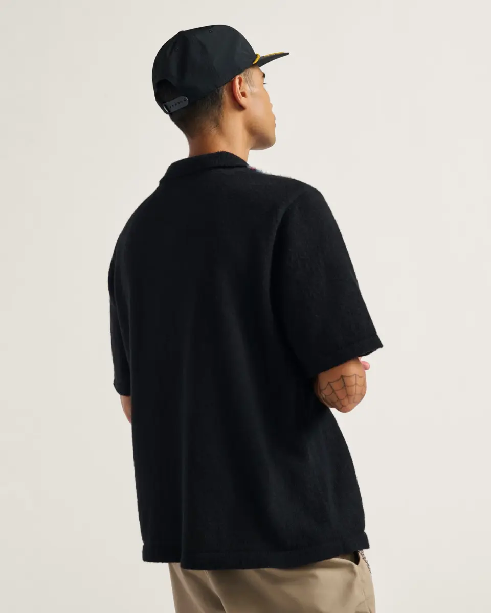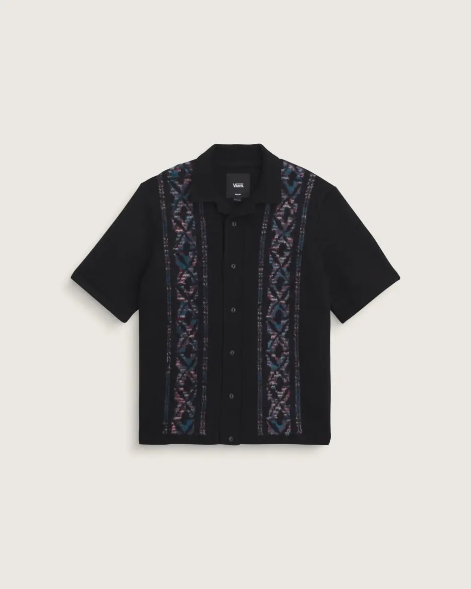 La classica camicia button-down rétro si rinnova con la polo Wheeler, con maniche corte per uno stile casual e quotidiano e lavorazione a maglia pelosa per un maggiore comfort. La grafica jacquard tecnica aggiunge dettagli visivi di pregio su entrambi i lati della chiusura frontale con bottoni, combinando l’avanguardia Vans con un tocco retrò.