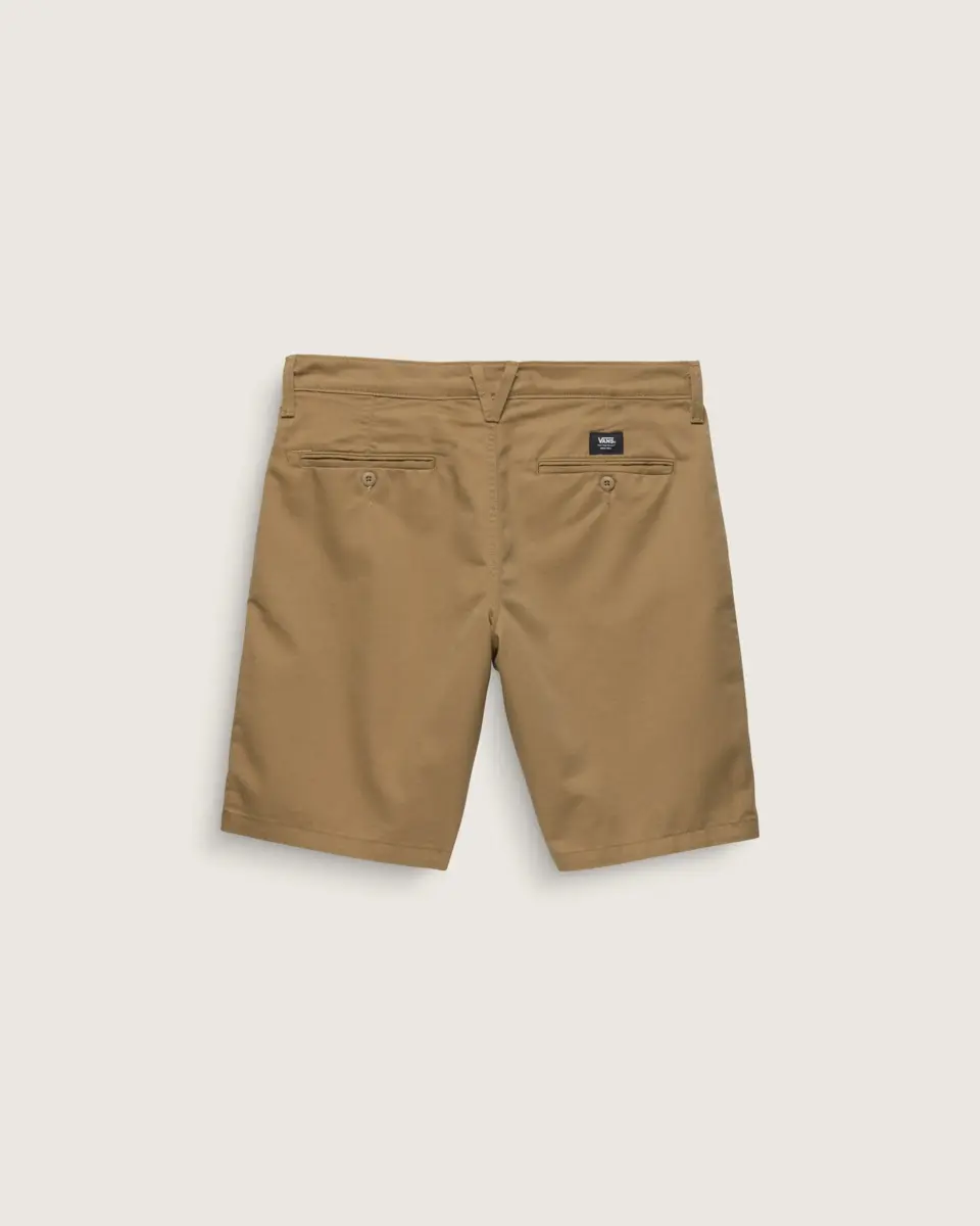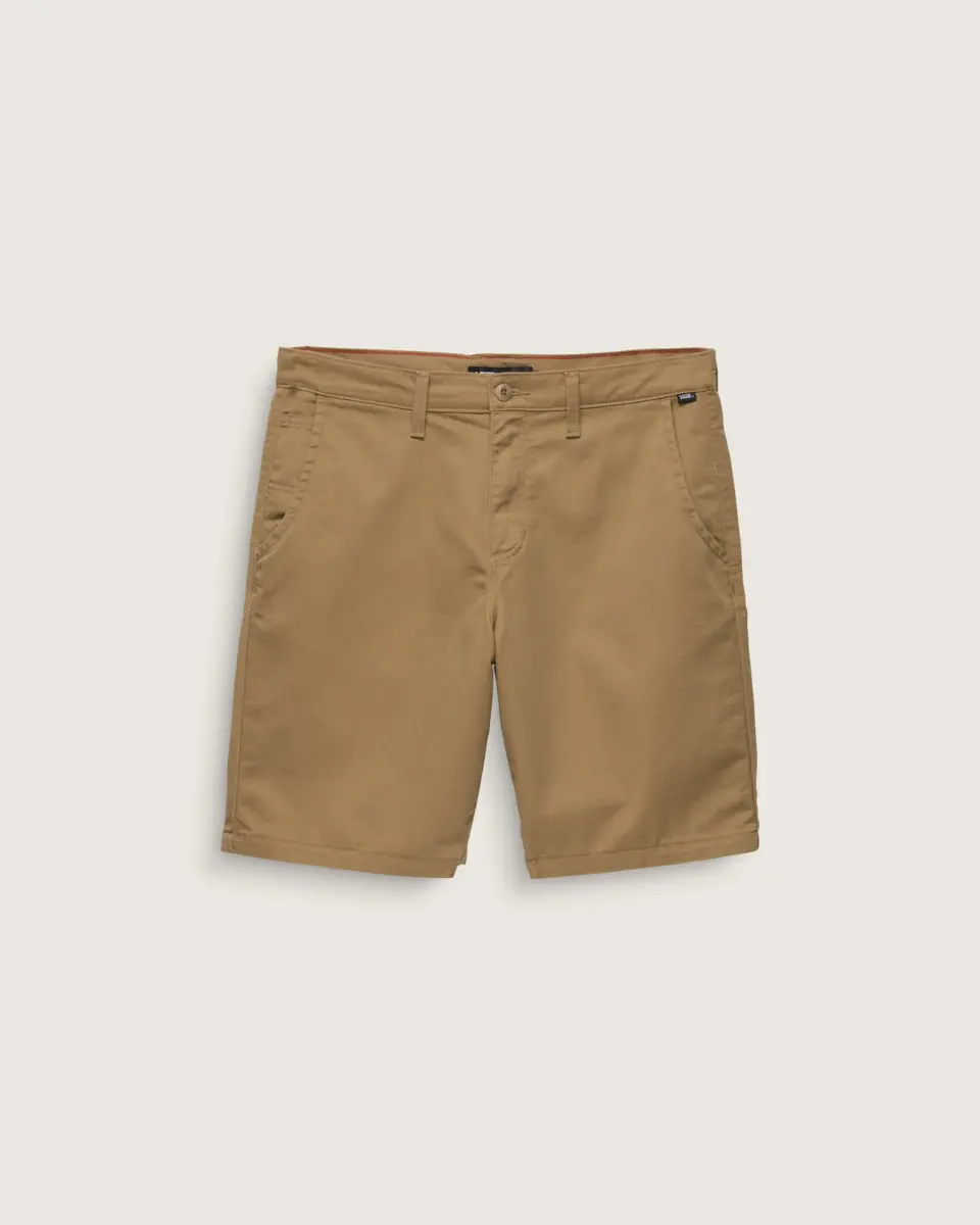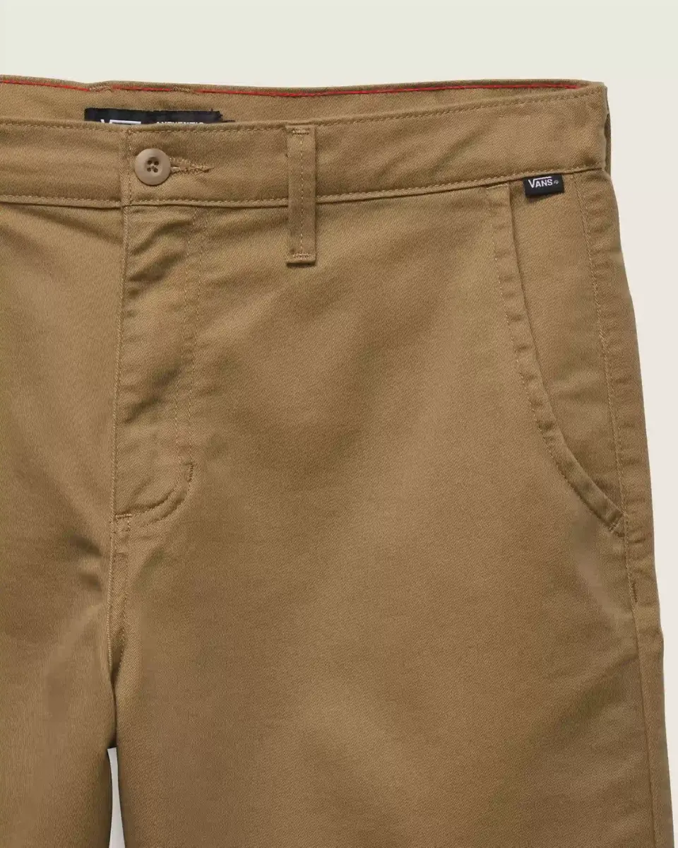 Gli short chino Authentic Relaxed sono perfetti per l’uso quotidiano grazie alla loro morbida fattura. I pantaloncini chino presentano tasche anteriori, tasche posteriori a filetto con chiusura a bottone e travette Drop V ricamate. Il dettaglio del passante per cintura a V sulla cintura posteriore e la nastratura in twill a scacchiera aggiungono un look iconico Vans, garantendo al contempo la massima qualità.