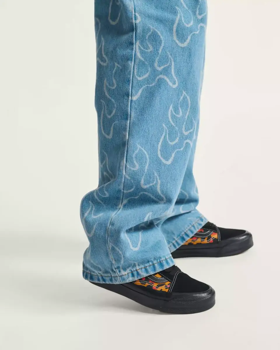 Progettati per durare, i pantaloni Check-5 Blaze Loose Denim sono pantaloni classici in denim pesante, dalla vestibilità ampia, con 5 tasche e una gamba più ampia per permetterti di pattinare liberamente. Questi pantaloni presentano anche dettagli come fiamme stampate al laser su tutta la superficie, un passante per cintura a “V” e travette ”Drop V” ricamate sulle tasche, con un’etichetta a bandiera cucita internamente sull’orlo per un maggiore branding quando sono risvoltati.