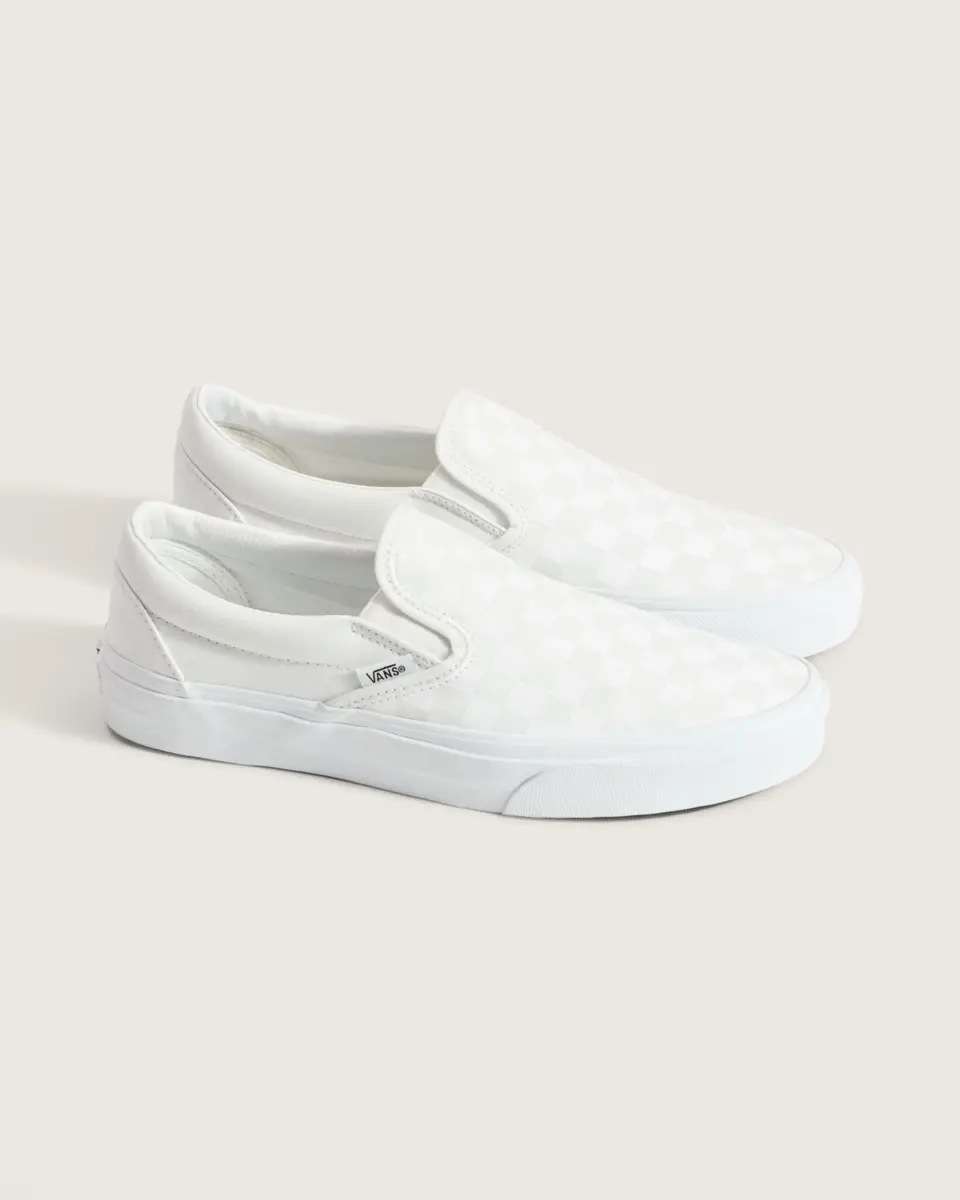 Presentate nel 1977, le Vans #98, oggi note come Classic Slip-On, sono un’icona della California del Sud e un capo essenziale per tutti i giorni. Queste scarpe Checkerboard Classic Slip-On in True White/True White presentano una tomaia in tela dal profilo basso, un collo imbottito di supporto, inserti elastici laterali e la nostra esclusiva suola waffle in gomma.