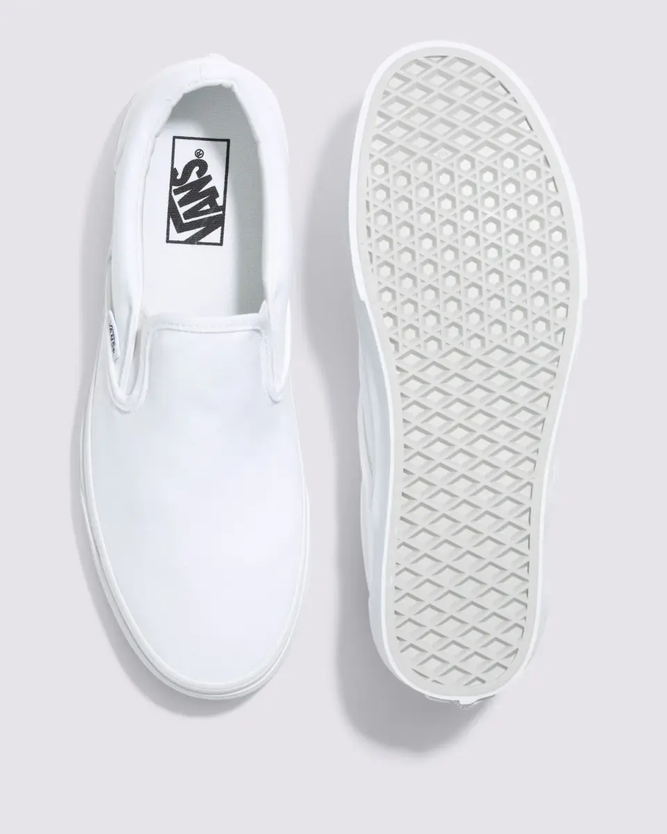 Presentate nel 1977, le Vans #98, oggi note come Classic Slip-On, sono un’icona della California del Sud e un capo essenziale per tutti i giorni. Queste scarpe Classic Slip-On bianche in tela con ampia larghezza presentano una tomaia in tela dal profilo basso, un collo imbottito di supporto, inserti elastici laterali e la nostra esclusiva suola waffle in gomma.