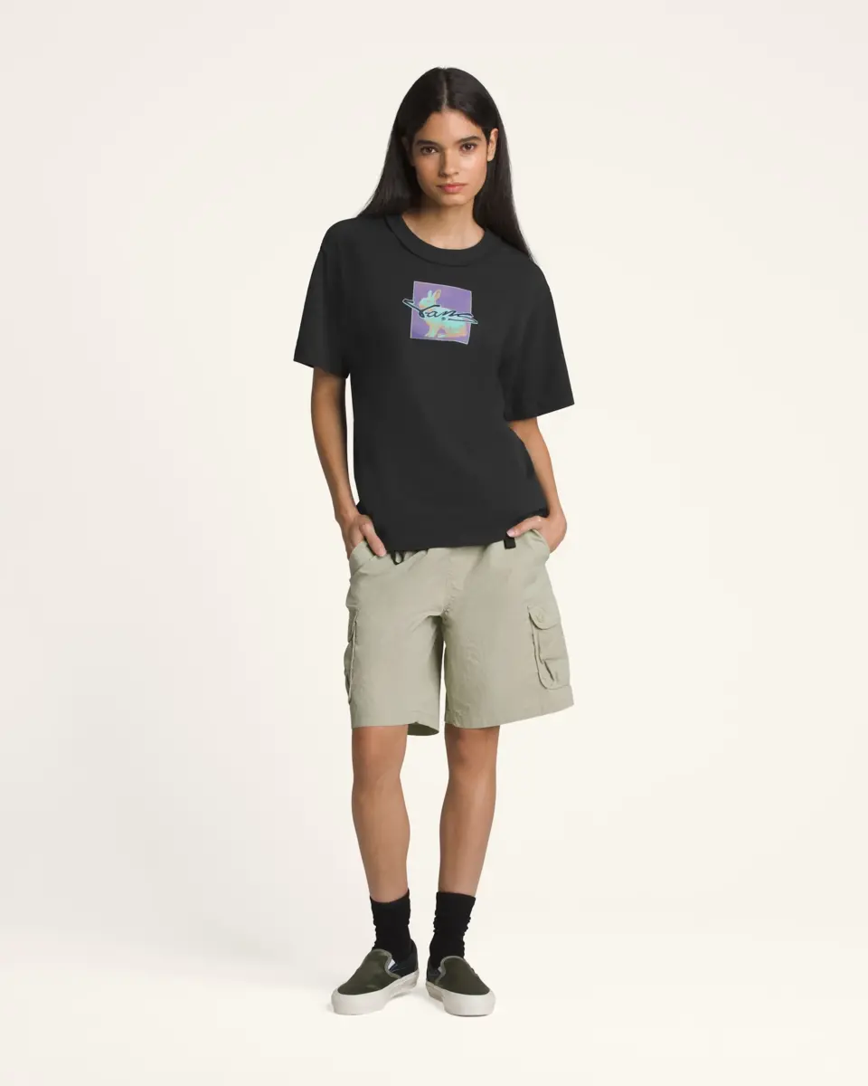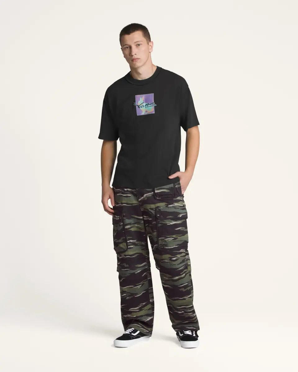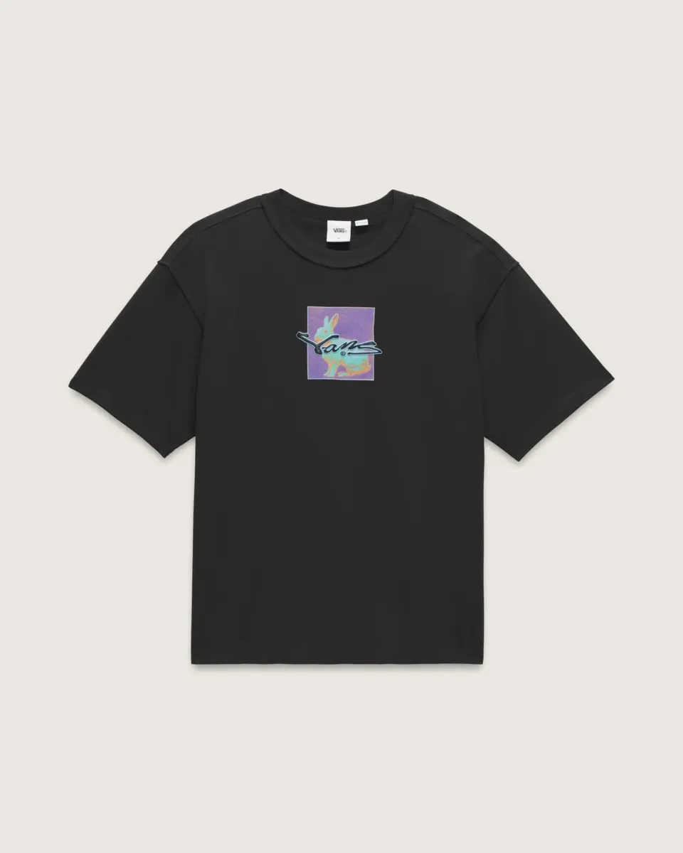 - T-shirt girocollo a coste larghe con stampa frontale a t-shirt e dettagli in vernice sbuffo
